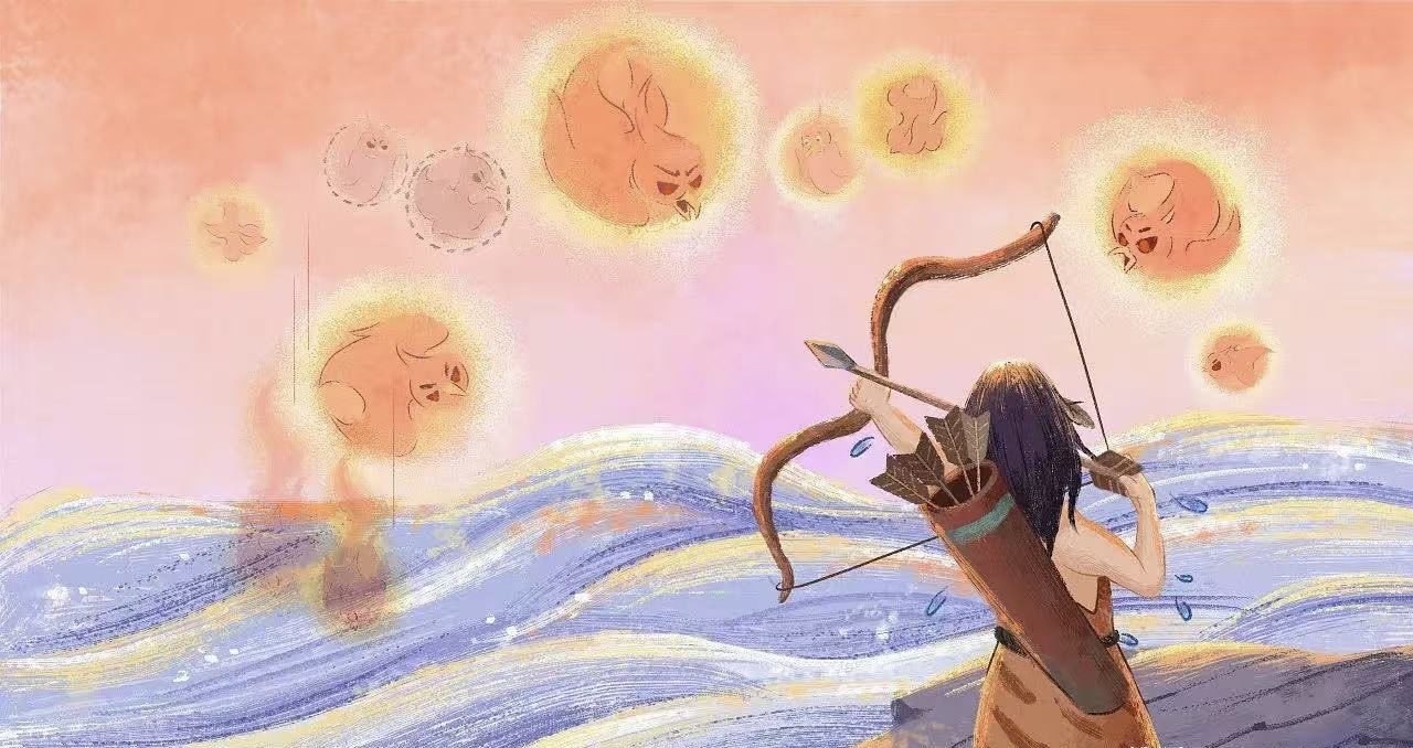 This is myth is connected to the https://mushroom-scholars.org/group_page/parents-myth-the-legend-of-change-the-moon-goddess/ , as the Chang e is Hou Yi’s wife, and their story is connected.