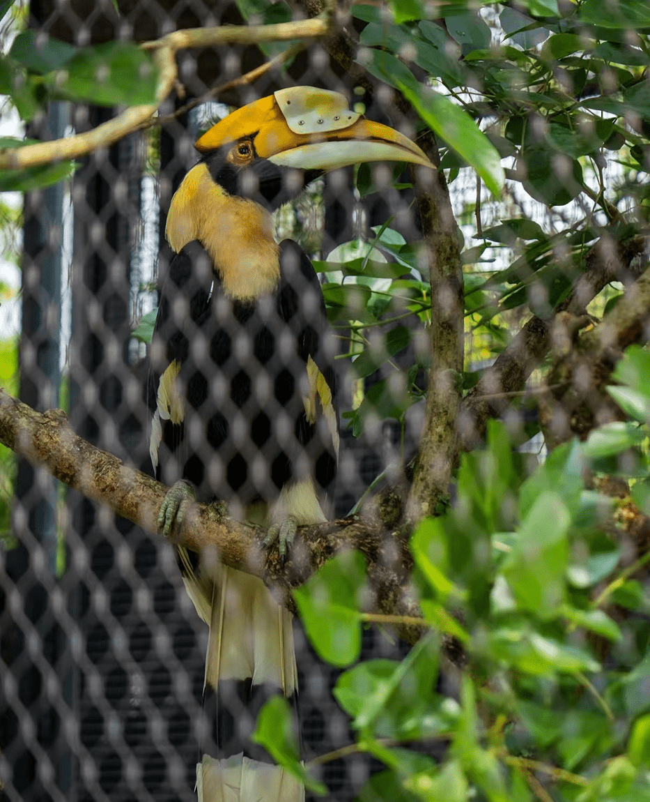 The first place I visited was the Wing Sanctuary, and I was amazed by its complex landscaping and how it provides birds with natural hiding and resting spots. The plants in each cage are carefully selected to mimic the birds’ native habitats (this must cost a fortune!), creating the feeling of a miniature forest. Most of the residents here are injured birds. For example, the bird in this picture is a great hornbill that had cancer. After its diagnosis, veterinarians surgically removed the affected part of its casque and replaced it with a prosthetic made using 3D printing. It was fascinating to learn about this level of care.